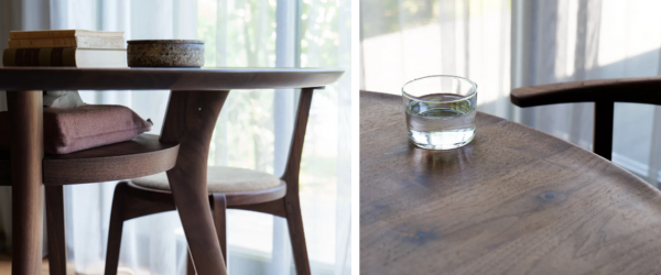 重厚感のある無垢材テーブルは、使うほどに風合いが増し、経年変化による美しい存在感と調和が生まれ、家族の成長と共に長く楽しんで頂けます。