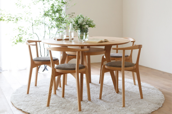 柔らかさとシャープさを両立したデザインのHIRASHIMAを代表するダイニングテーブル、『AGILE Circle Dining Table』。