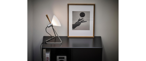 レ・クリントの最初のシェード「MODEL 1」と、ミニマルなブラックのスタンドを組み合わせて誕生。