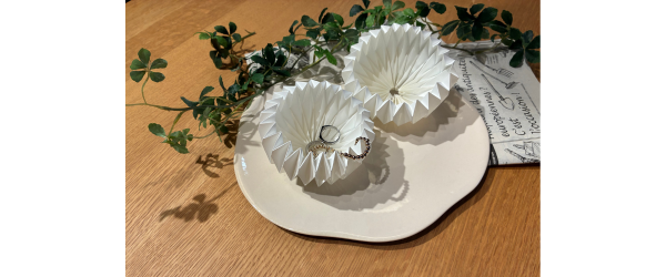 繊細なシェードを一つ一つ折りあげ、小物入れを作りました。