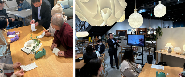 プリーツを折る技術を身につけるだけでも1~3年かかると言われている伝統技術。細かい折りを作りあげる作業は「難しい、、、」という声もありましたが、 熟練の方の技術の高さや、繊細な職人技によって生み出される造形美の魅力に触れることができた貴重な体験となり、ご参加の皆さまからも「楽しかった!」というお声を多くいただきました。